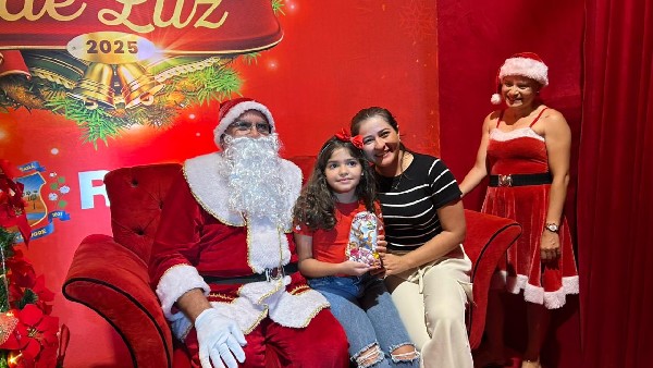 Um dos momentos mais aguardados da noite foi a chegada do Papai Noel, que recebeu simbolicamente as chaves da cidade. Muito solicitado pelas crianças, o bom velhinho posou para fotos, distribuiu sorrisos e entregou guloseimas, despertando a alegria dos pequenos e o espírito natalino nos adultos.